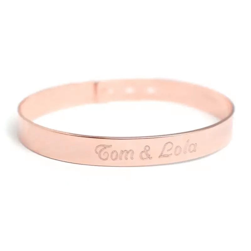 Découvrez le jonc ruban large plaqué or rose. Un jonc souple et large pouvant être gravé d'un message, d'une date, d'un prénom ou un symbole. Le jonc est ajustable à trois taille et s'adaptera donc parfaitement à votre poignet.